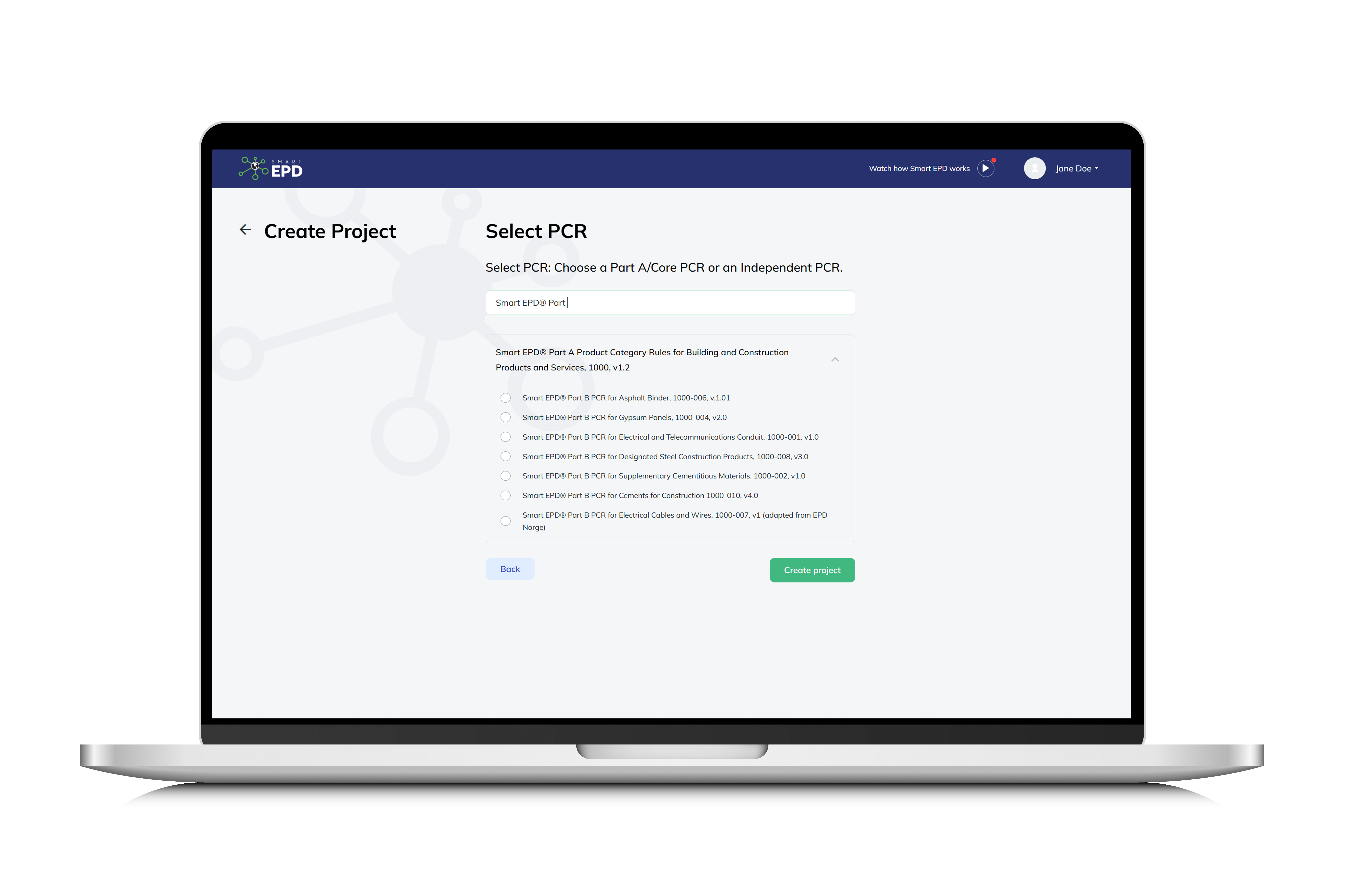 Start in the Smart EPD Platform: Create Your Project
